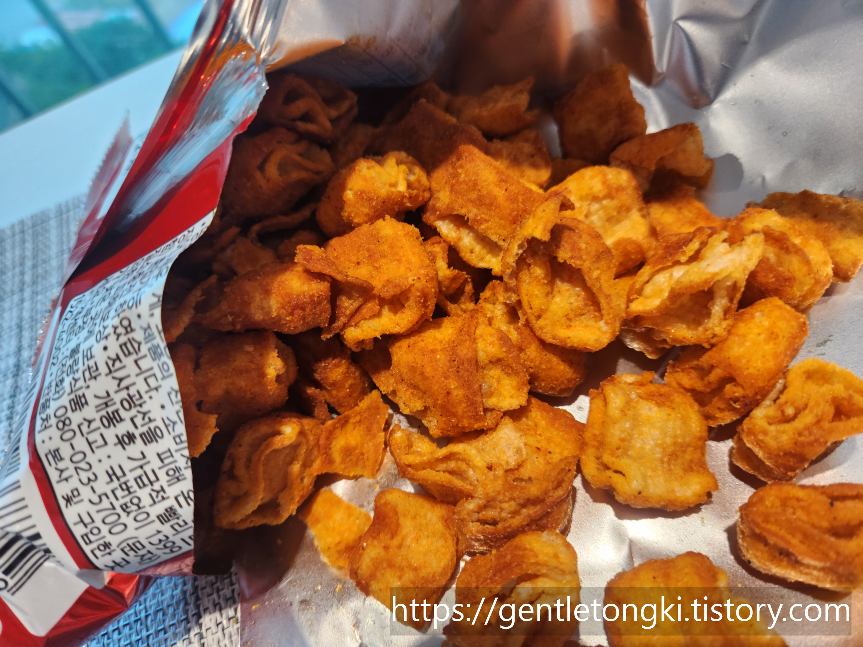 개인적으로는 이전에 맛본 프링글스 닭강정 맛과 비슷한 맛이 아닐까 하는 생각도 했었는데요. 막상 두 제품을 비교해서 먹어본 결과, 제 입맛에는 꼬북칩의 압승이라고 말할 수 있겠습니다.