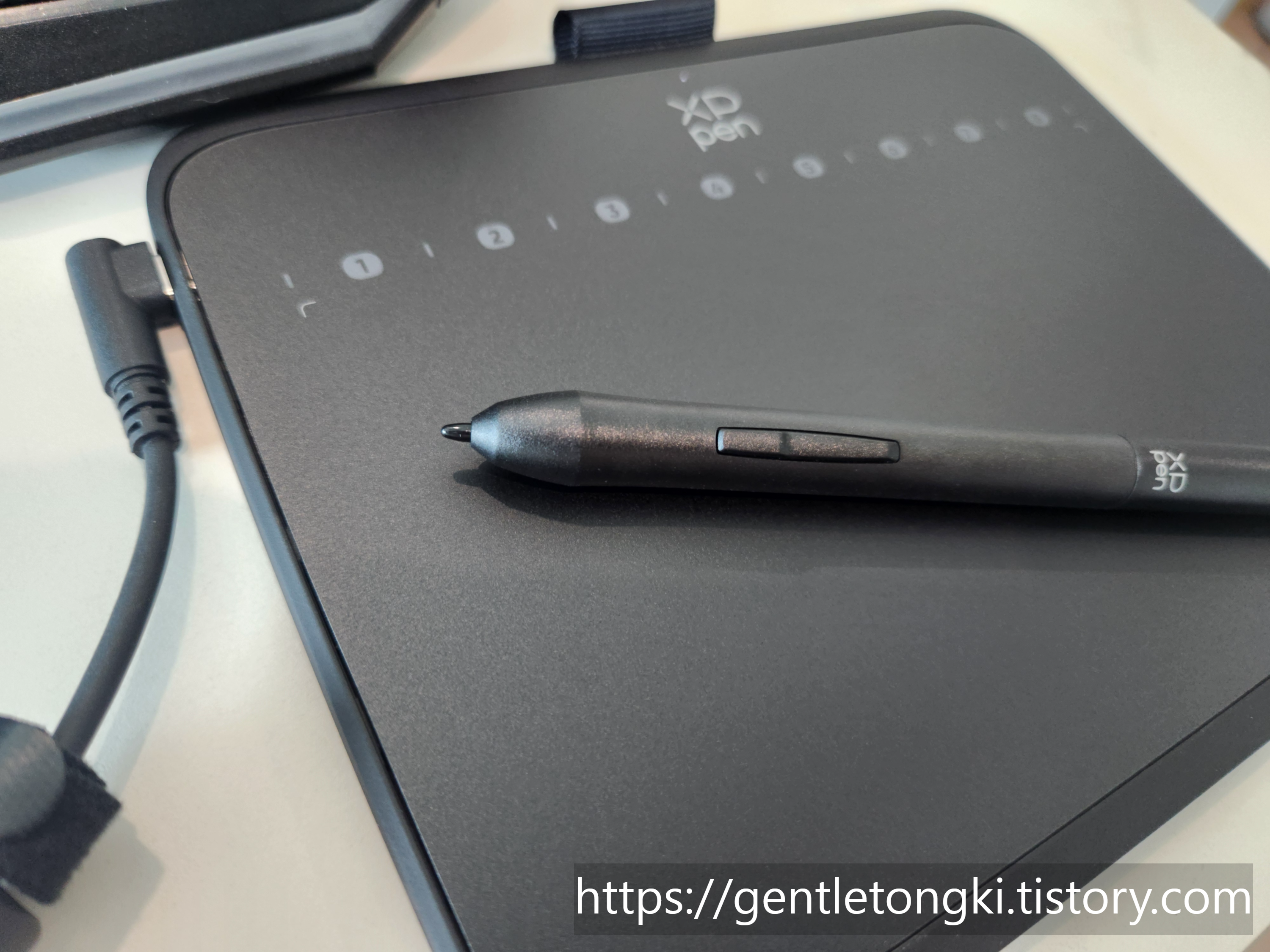 이 제품의 **작업 영역(160mm x 90mm)**은 누군가에게는 작게 느껴질 수 있지만, 저처럼 입문자에게는 오히려 장점으로 다가옵니다. 책상 공간을 많이 차지하지 않아 편리하고, 휴대하기도 간편합니다. 실제 사용해본 필기감은 종이에 비할 바는 아니지만, 그렇다고 너무 미끄럽지도 않아 적당한 마찰감을 느낄 수 있어 좋았습니다.