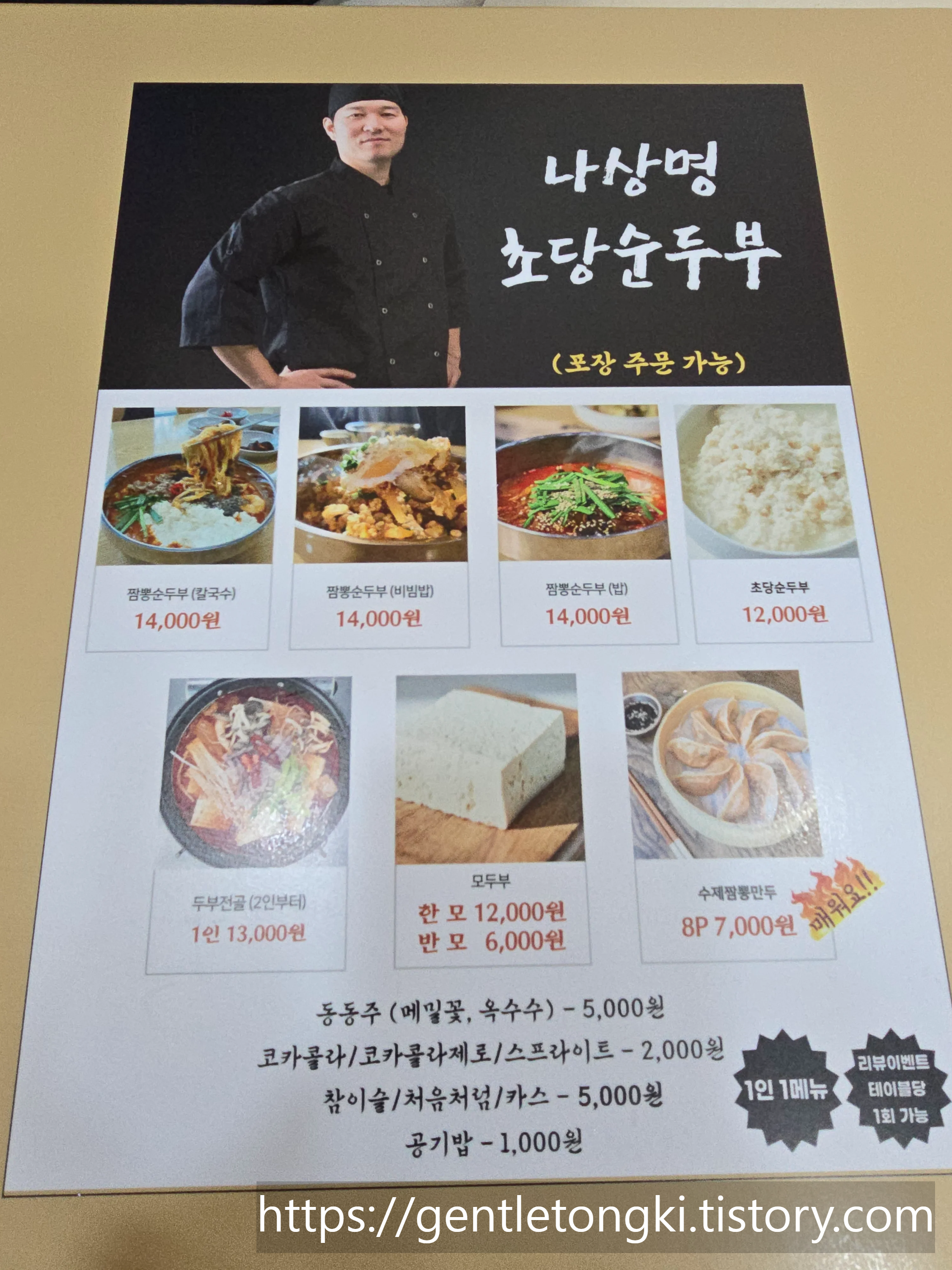 - 대표 메뉴: 짬뽕순두부(칼국수, 밥, 비빔밥), 초당순두부
