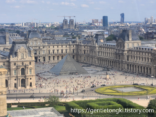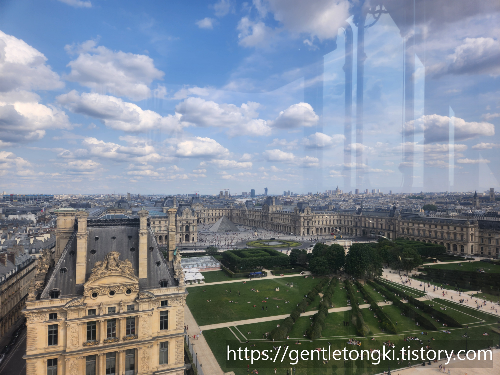 루브르 박물관과 튈르리 정원, 그리고 그 너머 파리 시가지가 시원하게 펼쳐집니다.