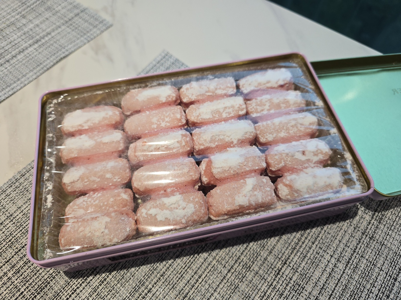 그냥 먹어도 맛있지만, 샴페인이나 커피에 살짝 찍어 먹으면 더욱 부드러워지면서 풍미가 깊어집니다. 핑크색의 아름다운 비주얼 덕분에 선물용으로도 인기가 많으며, 파티 테이블에 올려두기만 해도 화사한 분위기를 연출할 수 있습니다. 바삭하면서도 입안에서 사르르 녹는 식감 덕분에 남녀노소 누구나 좋아할 만한 디저트입니다.