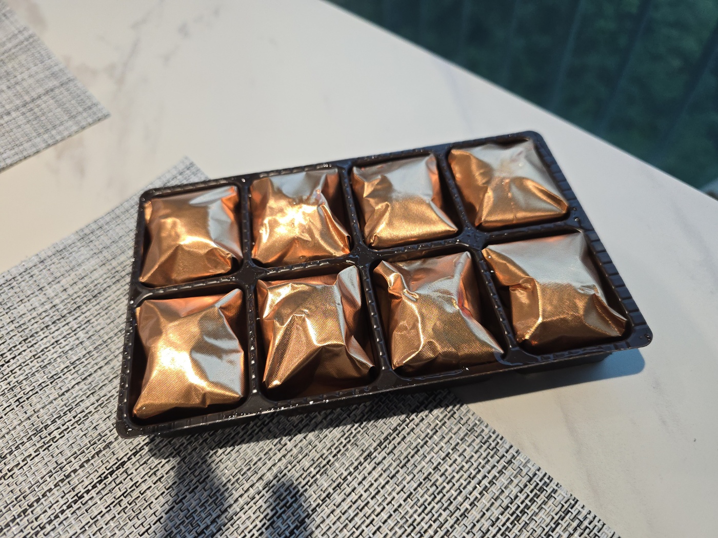 고급스러움이 느껴지는 칼리쏭 패키지입니다. 엑상프로방스의 상징인 배 모양을 닮아 더욱 특별합니다.