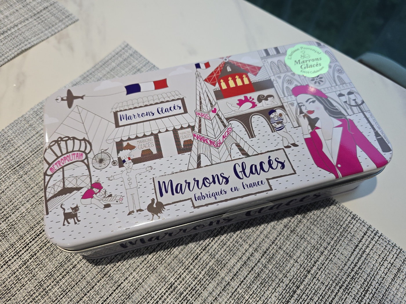 파리의 감성이 물씬 풍기는 패키지에 담긴 마롱 글라세입니다. 섬세한 그림이 더욱 특별한 느낌을 줍니다.