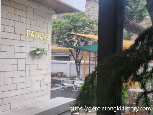 파티오33은 1층과 2층, 그리고 넓은 야외 테라스까지 갖추고 있어 좌석이 상당히 여유로운 편입니다. 특히 테라스 공간은 파라솔과 텐트 형태의 차양막이 설치되어 있어 따사로운 햇살 아래에서도 시원하게 시간을 보낼 수 있었습니다. 푸릇푸릇한 식물들이 곳곳에 자리하고 있어 눈의 피로도 풀리고, 마치 자연 속에 있는 듯한 평화로운 기분을 느낄 수 있었습니다.